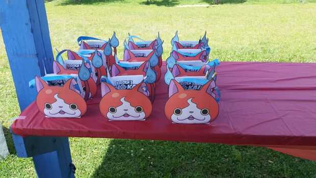 El pastel fue hecho en la panadería de la tienda de comestibles local usando una imagen que edité en photoshop leer happy B-day Kaiden en una medalla de Jibanyan.