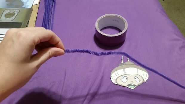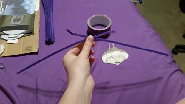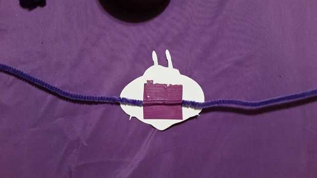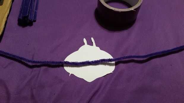 Encuentre el centro del limpiador de pipa larga y lay que se centra en la parte posterior del cuento de chivarse cortar. Cinta adhesiva en su lugar.