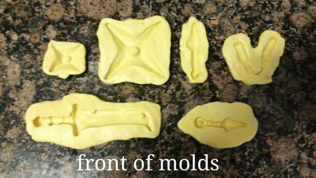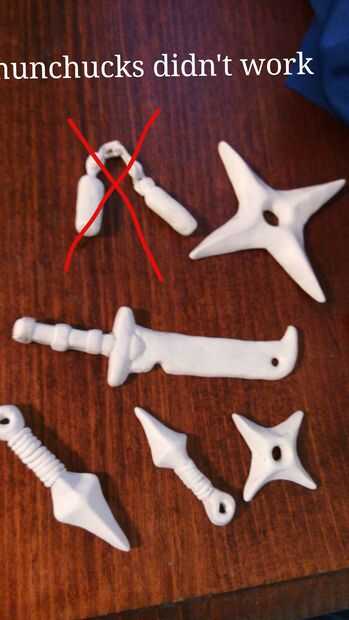 El kunai, estrellas ninja y las espadas se echan chocolate hice de moldes que echa de los elementos forma con arcilla de Bake (hornear) del horno.