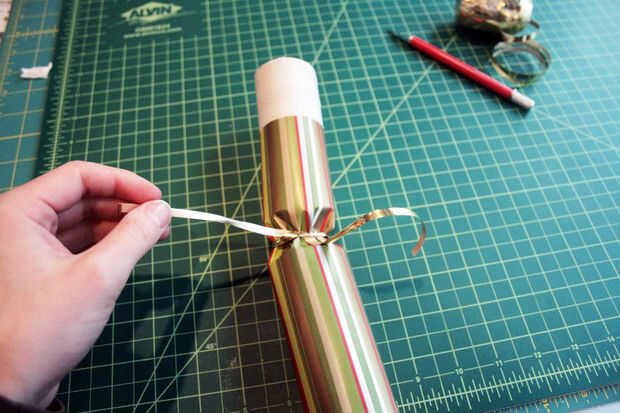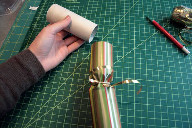 • Envuelva la cinta alrededor de papel unas cuantas veces, tirando firmemente para cerrar el extremo del tubo