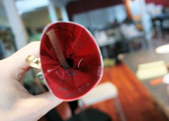 Primero cerramos un extremo de la galleta.  Luego rellenar con golosinas y atar el otro extremo!
