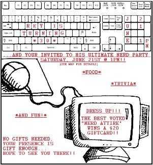 Él es un programador de computadoras, por lo me dio la idea de una fiesta con un tema que le lanzan... Un grupo de Nerd!