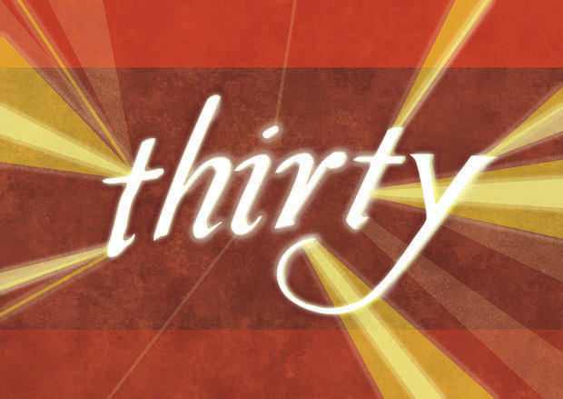 Estas característica de invitaciones "treinta" en fuente de firefly en el frente de la tarjeta postal, creado en photoshop.