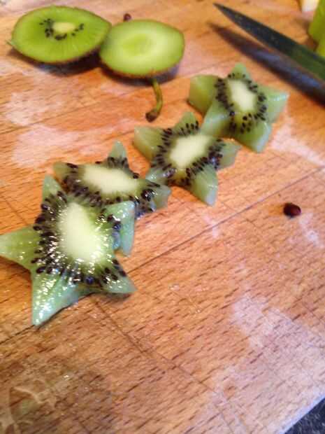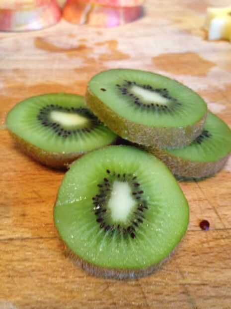 Ahora Repita el paso 4 pero con el kiwi, sin embargo esta vez Mantén la parte media del kiwi en lugar de la sección exterior.
