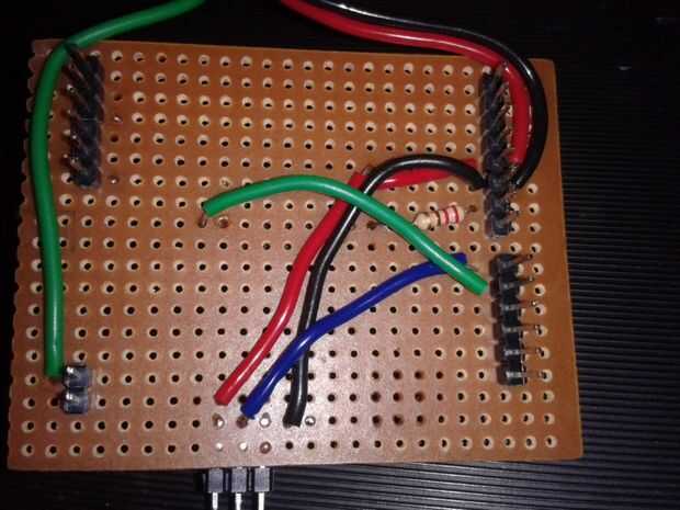 3) después de la soldadura de todos los componentes según el plan de conectan el escudo con el enlace una tabla.
