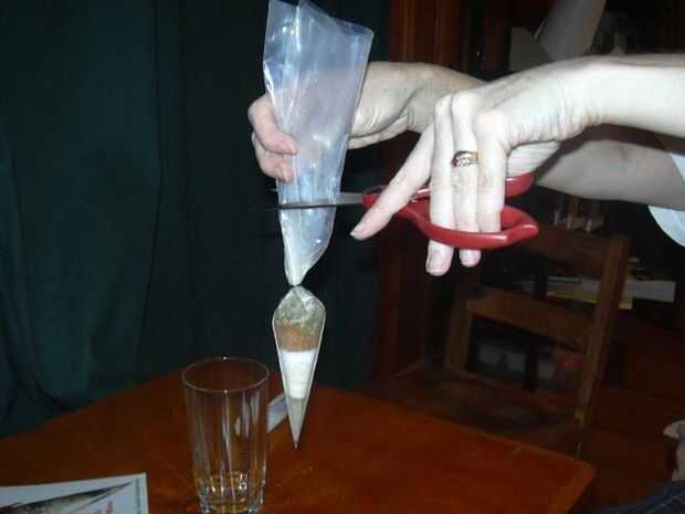 Squeeze y forma la punta otra vez para volver el primer ingrediente en su lugar y