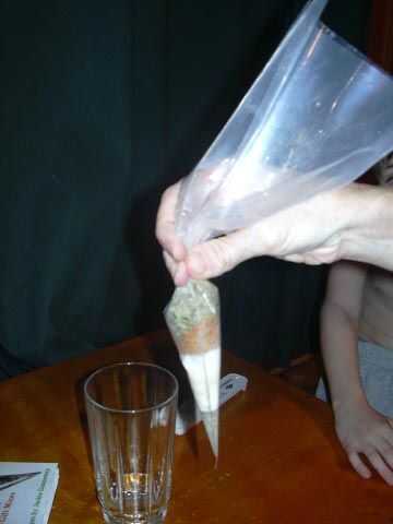 Terminado etiquetando todos los ingredientes, tomar cono de vidrio,
