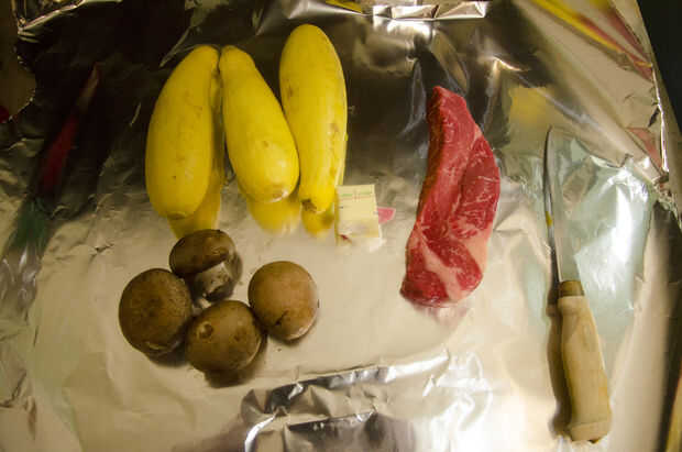 Puede utilizarse una sartén, olla o incluso un horno holandés, pero un horno holandés no necesita el papel de aluminio. Espero que siga y haga su propio, aunque tiempos de cocción varían dependiendo de su fuego, una buena cama de carbones es ideal.