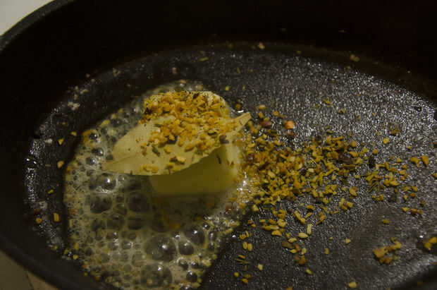 Precaliente su fundición por unos minutos. No tiene que estar muy caliente, lo suficiente como para derretir la mantequilla y cubrir la sartén.