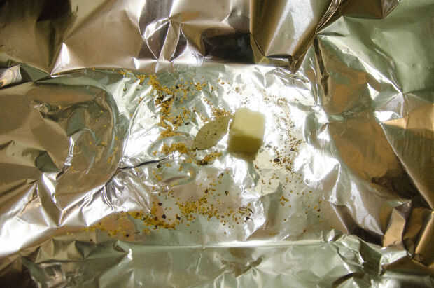 reunir las especias y apartarlas, generalmente pongo en la hoja así algunos palitos y extremos encima de la comida también.