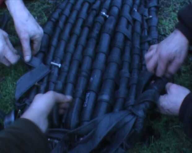 Het moeten veel banden zijn om het vlot te laten drijven.