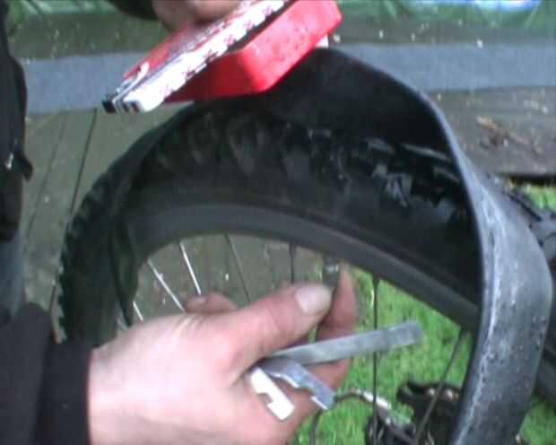 LAAT de banden leeglopen om de banden van de fiets af te halen.