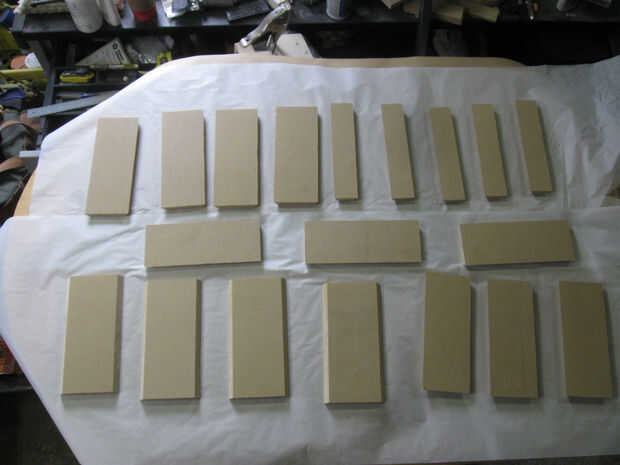 Varias secciones de MDF fueron cortadas en 8 1/2 pulgadas de ancho y 11 pulgadas de ancho
