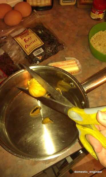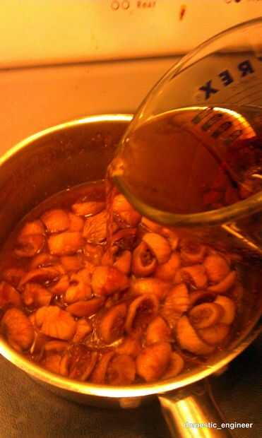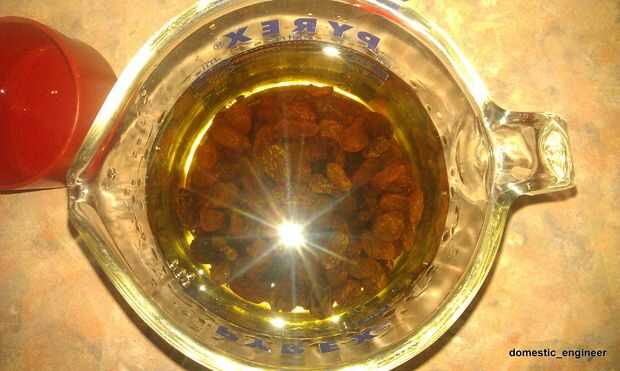 Cuando el agua esté casi todo pasado, añadir las pasas, rones y brandy.