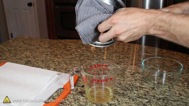 Usé la tapa como un colador verter la grasa en un recipiente, pero este método crudo permiten algunas impurezas pase a través.