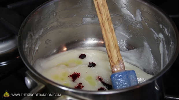 Para color, usé 7 gotas de colorante rojo. Para la fabricación de jabones, colorante probablemente no se recomienda, pero trabajado grandes para este propósito.