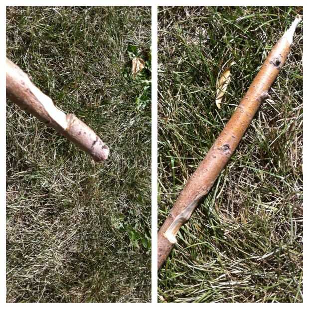 En el otro antebrazo palo longitud tallar un extremo en un punto cuadrado y por lo menos 2 pulgadas desde el otro extremo tallar una muesca que se ajusta el punto cuadrado de la memoria principal.