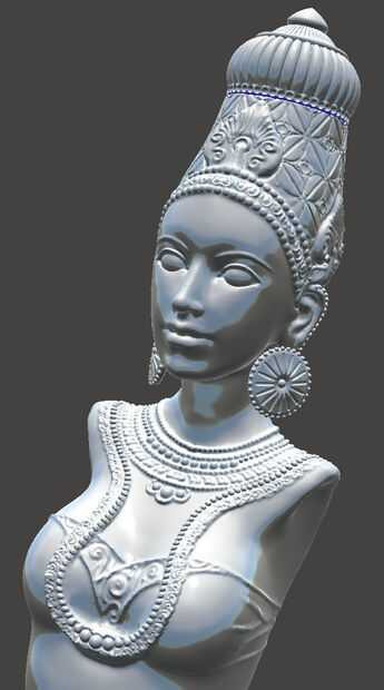 3. Cómo divide su tiempo entre los programas de modelado dependerá de su diseño. La estatua de León fue esculpida sin cualquier CAD. Sin embargo, algunos de ornamentación de Durga fue modelado en CAD. Varios de sus armas (como su Tridente, espada, disco y bola de fuego) también fueron modelados en CAD. Brazos (incluyendo sus brazaletes y pulseras, pero no incluyendo sus manos) fueron modelados en CAD.