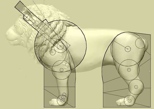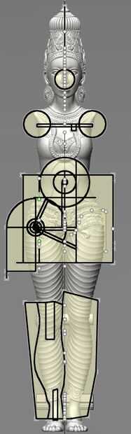 Aquí, Durga tiene 38 puntos de articulación, y su León tiene 16 puntos de articulación. Puede importar su estatua en un programa de CAD, o puede crear piezas conjuntas CAD para exportar a su orgánica modelado "Aparte cortar" su estatua en los empalmes que usted necesita. Aquí están algunas juntas que te gustaría utilizar: