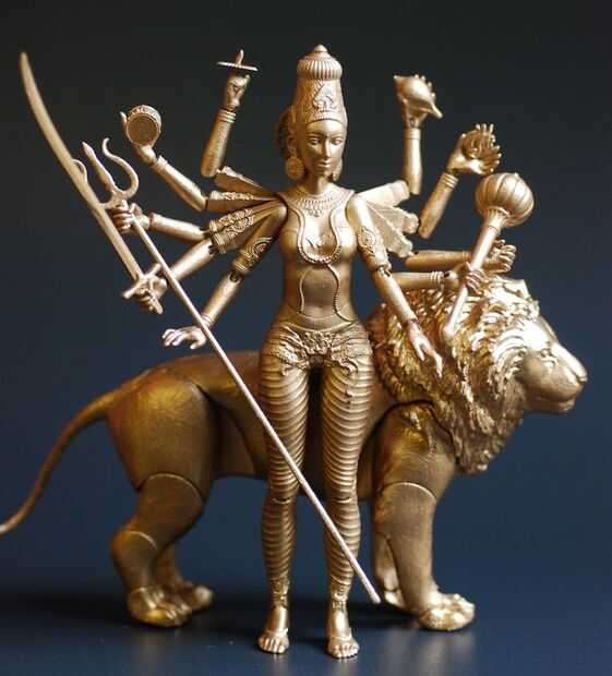 Aquí están fotos de Durga acabada y su León! Si tienes filamento metálico o resina, puede imprimir usando eso. De lo contrario, puede Aerografo o pintura de lo contrario su figura de acción final para conseguir el aspecto de bronce.