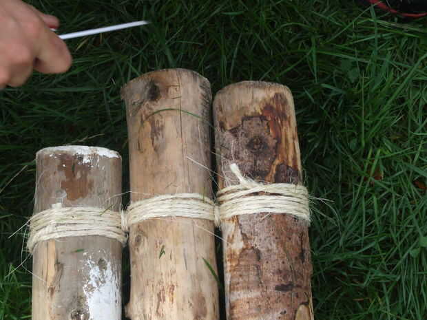 innertubes bicicleta son ideales para las estructuras de amarre juntos a toda prisa. Estos grandes botones le permiten hacerlo aún más rápido porque no tienes que envolver nada o empujar a través de orificios.Paso 1: Agujero Sierra menos centro talad