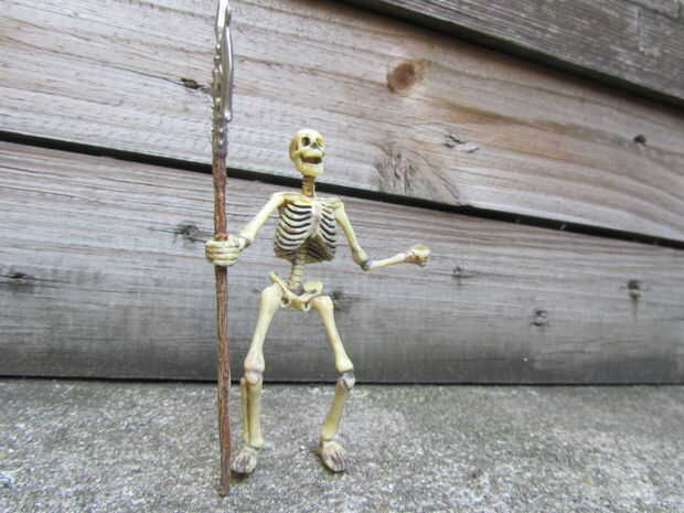 Los esqueletos vienen en una postura de ataque, la lanza/hacha que son explotación saca como se hacen extirpar.