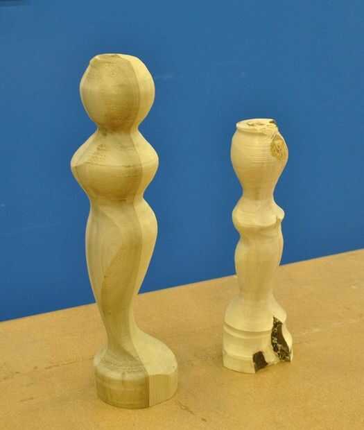 Esta pieza es una figura humana abstracta, que podría ser un modelo para una estatuilla o un ornamento de capilla. Una aplicación particularmente única para giros excéntricos son lujo barriendo las piernas de los muebles. Hago mi trabajo con torno utilizando el torno en TechShop.