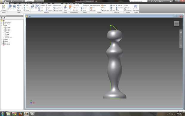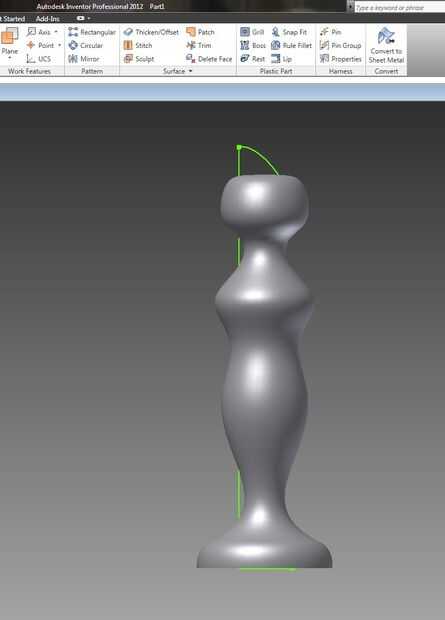 Utilizando la función giran en el menú de modelado, seleccione los perfiles y el eje del primer esbozo.  Esto es lo que debe buscar su giro real por paso 7.