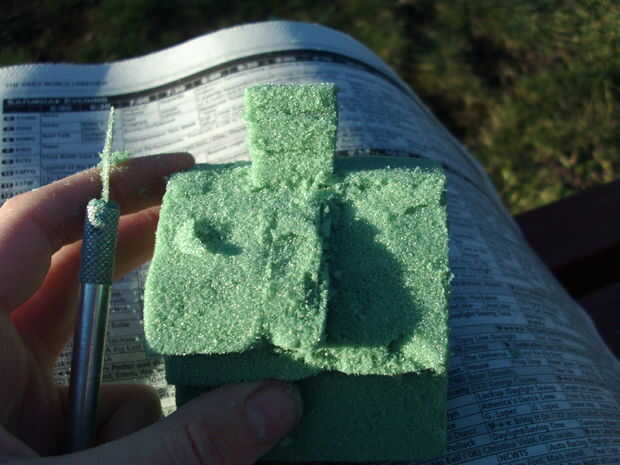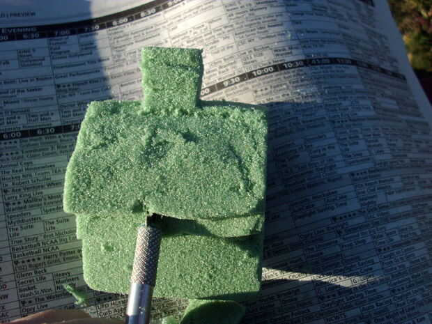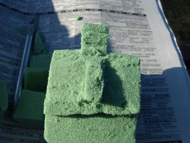 Así que hacer dos cortes para formar una pieza que va a ser un brazo. Entonces a cortar el resto de la forma de brazo que no vas a usar y hacer lo mismo en el otro lado.
