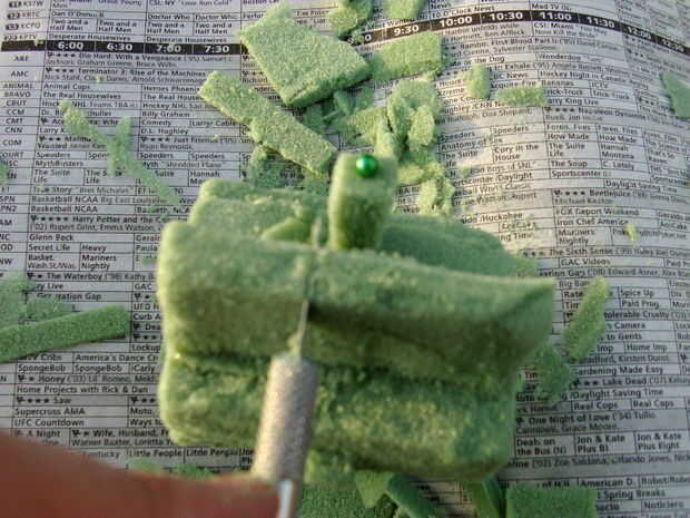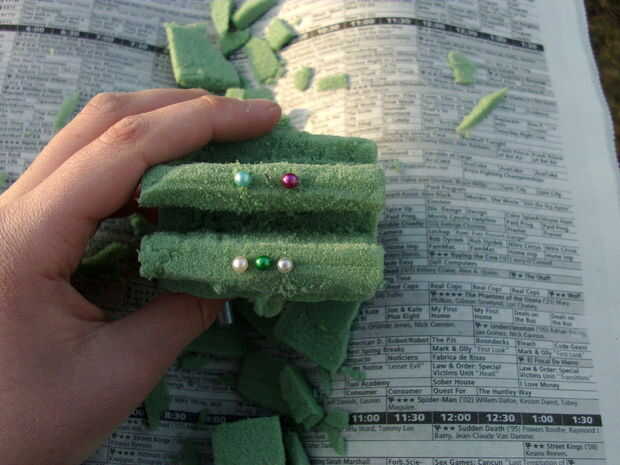 Primero si vas a tener que decidir donde exactamente quieres las piernas y hacer los cortes como lo hicimos en los brazos y cabeza. Pero esta vez a poner un alfiler en cada una de las patas y dentro de los cortes que hiciste. Esto evitará que le corte las patas y ajustándolos de. Porque cuando usted está cortando hacia abajo mientras está en su base como un prisma golpeará los pines pones en los cortes para que no corte las patas. No tienes que hacer esto, por supuesto. Pero ayuda. Por ahora espero que saber cortar las piernas, ya que usted ya hizo lo mismo con la cabeza y los brazos.