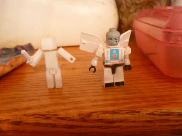 La mini figura resultada agradable. Era más pequeño y luego imaginé que sería, y las articulaciones de bola se deslicen el cuerpo como yo esperaba así que tuve que salir de la pistola de pegamento. Había pegado de las juntas de bola para el cuerpo y la cintura, luego pega la cintura al cuerpo y la espada a la mano. Después de salió bastante bien. Imágenes fijas de necesita algún ajuste (que significa mirar hacia fuera para la versión 3).