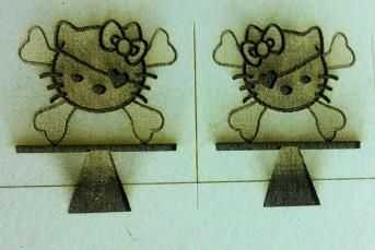 3. a continuación, había grabado la imagen en la tabla y cortar utilizando el láser de Epilog. Como se puede ver en la imagen 3 el láser hizo un buen trabajo de grabado de cada color a una profundidad diferente en esta prueba en una pieza de lámina perimétrica.
