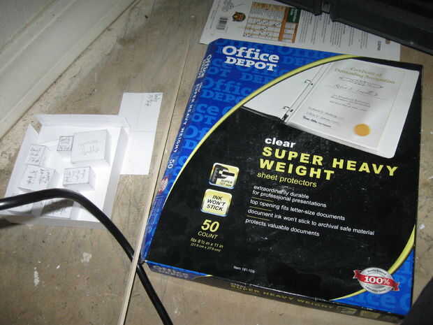 Mientras estaba en Office Depot, cogí un paquete de protectores de página transparente resistente. Mi plan era crear la burbuja de envases de plástico como ver en juguetes reales. Lo primero que hice para empezar en era medir todas las figuras y accesorios. Trazado el contorno de una de las figuras para hacer una especie de ataúd. Esto restringiría el movimiento mientras que en la caja para evitar que cualquier chipping pintura futura. Luego hice cajas pequeñas para caber alrededor de los accesorios y cabezas alternas. El hacer que unir las cajas, utiliza una pequeña cantidad de pegamento en cada costura. Esto hizo los cuadros capaces de hacer frente a la pistola de calor, porque yo sepa super no derretir el pegamento. El final lo que hice fue hacer una caja grande para albergar las cajas más pequeñas. Este uno grande sería la burbuja exterior.