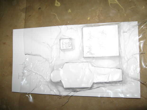 Una vez listos mis cajas, agarré mi pistola de calor y los protectores de página. El plástico fundido proceso había implicado mucho ensayo y error antes de se vea bien. Mi plan original era que la carcasa exterior hecha de dos capas de plástico (o 1 protector de página completa). Esto salió buscando nublado, así que intenté otra vez con una capa de plástico (el protector de página de la corte en dos mitades). Tenía que poner mi pistola de calor a baja temperatura porque el plástico se derrite demasiado rápido. También traté de no derretir la parte delantera de la carcasa exterior. Cuando el plástico se enfríe un poco después de unos 30 segundos, usted puede quitar la caja de papel y llevará a cabo su forma. De la cáscara interna, utilicé el ataúd de la figura y las cajas accesorios para crear un molde para sujetar las piezas como juguetes reales cómo son. Al principio usaba una sola capa de plástico, pero que estira demasiado delgada y rasgado del complicado grupo de formas. Probé otra vez con un protector de toda la página y funcionó muy bien. No parece perfecto, pero veía mejor de lo que esperaba.
