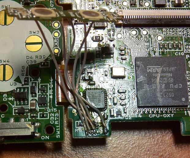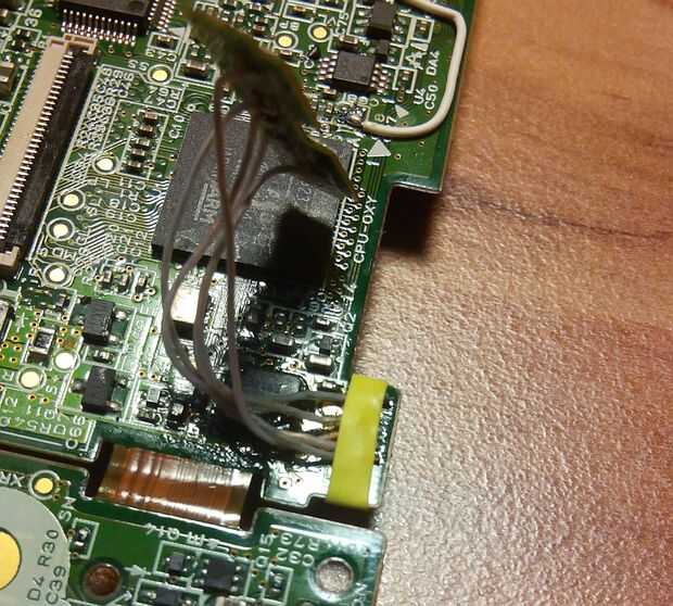 Ahora a la parte de cómo me enteré donde soldar a. En el número de diapositiva 4 puedes ver herramienta que utiliza - dos agujas con resistencia entre. Tuve una corazonada que flex cable conexión tendrá algunas vias en PCB, por lo que sondeado todo sospechosas conexiones con esta herramienta en encendido de la consola, viendo su reacción. También es la manera segura de quemar la consola, incluso con resistencia en allí para evitar cortocircuitos, así que por favor no hacerlo así a menos que tampoco sabes lo que haces o lo hace en algo considerado ya roto. Y nunca hacerlo con algo con red - de esa manera además de quemar la consola también podría prendieron fuego a su casa o suicidarse.
