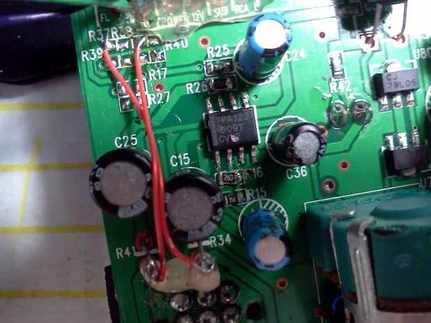 Para ello, identificar las dos resistencias smd marcadas R26 y R16. Habrá inscrito el valor 12D; que equivale a 130k. Comprobar con un polímetro que la resistencia a través de ella es k 130; otro podría eliminar el mal uno. Después de extraerlas, debe reemplazarlos con uno cuyo valor es mucho menor; menos de 20k. R26 y R16 deben tener el mismo valor.