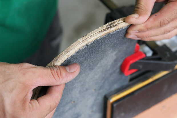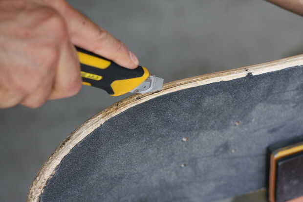 Así que el primer paso es encontrar las áreas de la delaminación y más abrirlos con un cuchillo afilado. Para ello, simplemente ejecute el cuchillo entre las capas un par de veces. Esto expondrá el espacio entero que va a estar lleno y volver a fijar con pegamento. Puede parecer que están haciendo el peor problema, pero un hueco limpio ayudará el pegamento llega a todas las áreas afectadas.