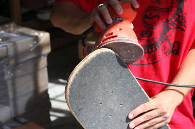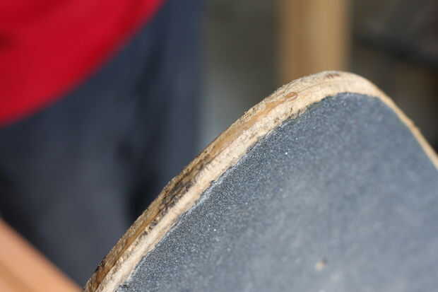Si todo se ve bien, que usted puede comenzar a preparar las chapas para una nueva capa protectora que ayudará a prevenir futuras delam. Para ello, arena detrás cualquier exceso de pegamento que se ha secado en el borde exterior de la placa. Esto puede hacerse con una mano de lijado bloque o cualquier dispositivo alimentado de lijado. Desea el borde a un agradable acabado liso de arena por lo que aceptará el recubrimiento uniforme protector.