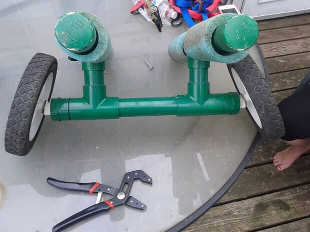 así que hubo un poco de un problema con el uso de mi carro de portage para un acoplado de la canoa de bicicleta.