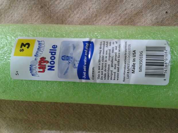En los 5 años desde que hice el carro, al parecer General del dólar cambió su marca de fábrica de los tallarines de la piscina de "fideos super loco" a los "tallarines gran Inno-wave" y esta nueva marca tiene un diámetro interno más pequeño.