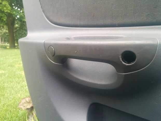 También tienes que sacar la manija de la ventana, y que requiere un poco de arañazos en la puerta y mi cabeza ya que no pude averiguar donde se encontraba el pasador que sujeta al mecanismo. Tanto en la parte delantera y trasera puerta, rompí una parte para llegar a él, pero era más por estética y prevención quienes, como yo en estas partes...