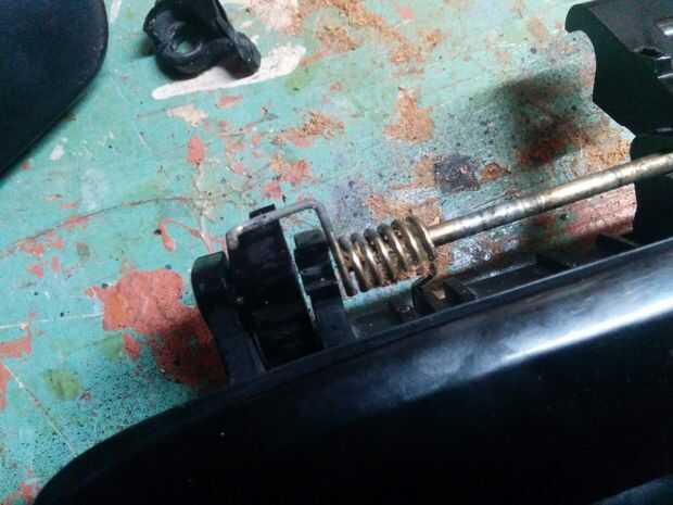 Para realizar esta switchamaroo, tienes que quitar, en mangos, la varilla del muelle de retención, la primavera y el unidor de goma.