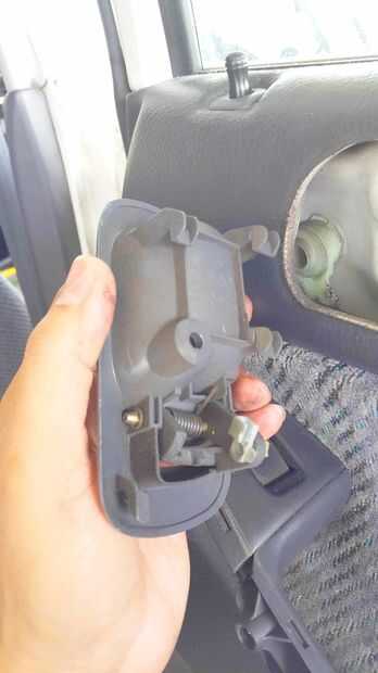 El primer paso es la retire la puerta tapa de la manija y desconecte el interruptor de la ventana. Dos tornillos que salen aquí. Tirador de puerta necesita un tornillo que se retiró y se deslice hacia delante y hacia fuera. La varilla de enlace debe ser abandonado.