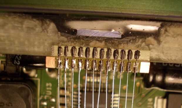Después se realiza el trabajo de soldadura, puede ir a continuar con el pad de la PCB - pad LCD de la vinculación. Para ello necesitamos un pegamento especial, llamado buen ayudante (esto se puede encontrar en e-bay buscando "Conductor alambre pegamento superficial Monte Flex juntas células solares Leds sin soldadura" o similar). Ten cuidado, este pegamento se seque en un par de minutos incluso a temperatura ambiente! Una vez abierto, siempre mantener el pegamento en la nevera y tratar de disminuir la temperatura a 15-17 grados Celsius antes de usarlo. Sé que es un desastre y la locura, pero considera que esta es probablemente una versión forjada de la cola original, por lo tanto son necesarias estas acciones preventivas. Ser una falsificación tiene sus ventajas, el precio es atractivo, puede comprar dos botellas por un par de dólares (tuve suerte de tener dos botellas ya que uno de él se secó - lo que guardé en el cajón del escritorio de mi oficina. El otro que guardó en la nevera es todavía intacto y usable).