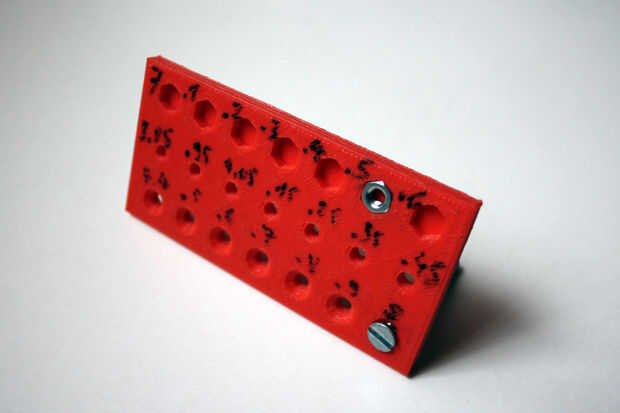 Con un proyecto que hice, necesitaba realzar un perno y tuerca. Asi que me hice una placa de prueba con diferentes dimensiones para comprobar qué dimensión se adapta mejor.