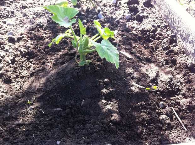 Fijación de las plántulas plantadas de Zucchinni