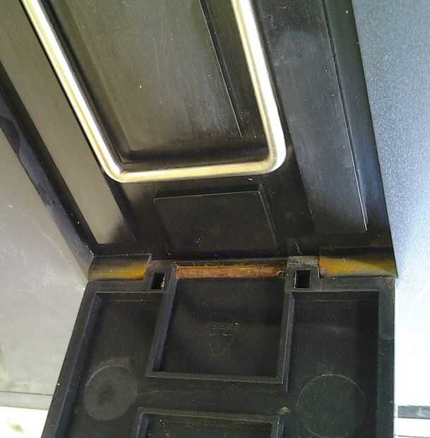 El agua tiene dentro a través de los agujeros de la bisagra, de pata de apoyo trasera y bajo el vidrio del panel solar.