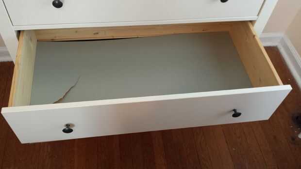 Cajones de mi hija siempre están consiguiendo mullidos con ropa. Entre su propia ropa y la interminable corriente de novela que ella hereda, era que más que los fondos de cajón barato podrían tomar. Compramos este aparador de una tienda que rima con tortilla y aunque no es el más barato que hacen, los fondos de cajón son muy endebles. Como la mayoría muebles flat pack, vino con madera prensada de 3mm para los fondos de cajón que encaja en una ranura del dado en cada uno de los lados del cajón, cara y parte posterior. La tabla finalmente tiró fuera de la ranura y necesita ser substituido, pero nunca me gusta hacer cualquier reparación una segunda vez, así que he actualizado a 1/4" madera contrachapada.