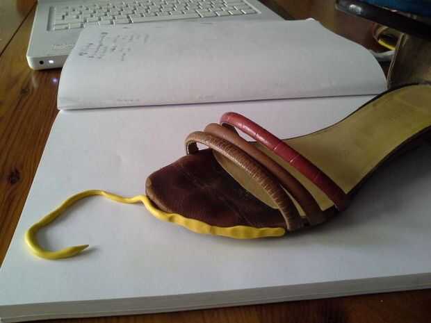 En este momento apliqué el amarillo Sugru a la zona dañada de la sandalia.