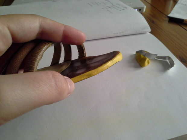 me quité cuidadosamente el resto de Sugru desde el borde de la sandalia.